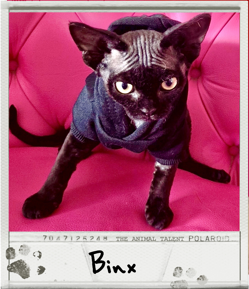 Binx’s smoky black fur and striking features make him an excellent choice for campaigns that require a youthful look.