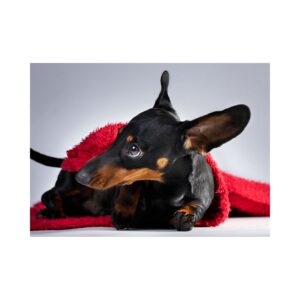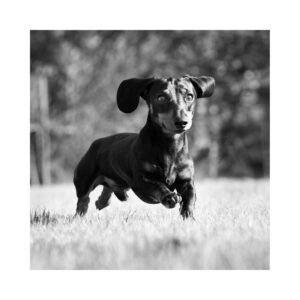 This gorgeous boy has the standard colours of the miniature dachshund, black and tan; an appearance that we’re all accustomed with. This works particularly well for brand association purposes and commercial photography where familiarity encourages positive reactions from purchasers.