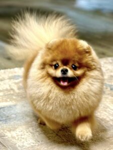 Rocco is a delightful 3-year-old male Pomeranian who exudes charm and elegance in equal measure. His luscious, fluffy coat, which is a rich blend of orange and cream, frames his cute, expressive face and tiny, pointed ears. His bushy tail curls up perfectly over his back, adding to his regal appearance. With his confident, playful stride and the sweet glimmer in his eyes, Rocco’s presence is both captivating and endearing. His compact size combined with his rich, luxurious fur gives him an almost regal air, a true reflection of his breed’s noble heritage.