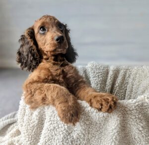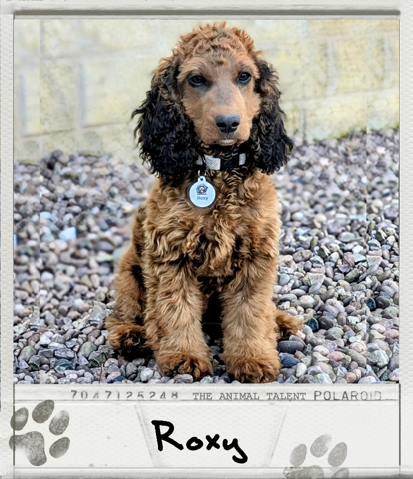 Roxy is a spirited one year old female Cockapoo with a vibrant personality and a striking appearance that captures the essence of her mixed breed. This delightful dog combines the best traits of the Cocker Spaniel and the Poodle, resulting in a charming, intelligent, and affectionate companion. With her soft, curly coat and big, expressive eyes, Roxy is not only adorable but also exudes an engaging and confident aura. Her playful nature and her endearing looks make her an ideal fit for both the camera and the stage.