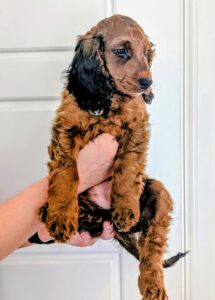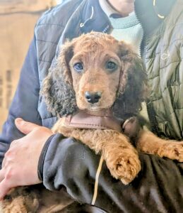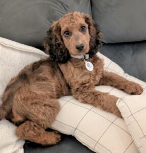 The Cockapoo breed, a popular crossbreed originating in the 1960s, is known for its friendly and sociable disposition. They are beloved for their hypoallergenic coats, inherited from the Poodle side, and their gentle, affectionate nature from the Cocker Spaniel. Roxy embodies these qualities, showing herself to be an intelligent, easy to train dog who thrives in the company of others. The breed is often seen in modern culture as the ultimate family dog, known for their energy and loyalty. Roxy, with her fluffy curls and playful spirit, is a perfect example of the Cockapoo’s lively and loving character, making her an ideal companion for families, singles, or anyone seeking a dog full of personality and charm.