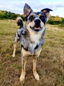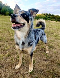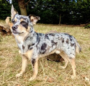 Waffle is a striking black merle Chi/Spitz cross with tan points and a personality that turns heads as much as his coat does. At five years old he is lively, confident and quick to charm. His alert ears and bright eyes give him an expressive look that works beautifully on camera. Chi/Spitz crosses often combine the bold, spirited nature of the Chihuahua with the cheerful energy of the Spitz, resulting in clever, trainable little dogs who love to be part of the action. His rare merle patterning gives him a distinctive appearance that is sure to capture attention in both film and photography. Small companion breeds like Waffle have been long-standing favourites in advertising and popular culture, often chosen for their characterful faces and ability to add a touch of warmth or humour to a scene.